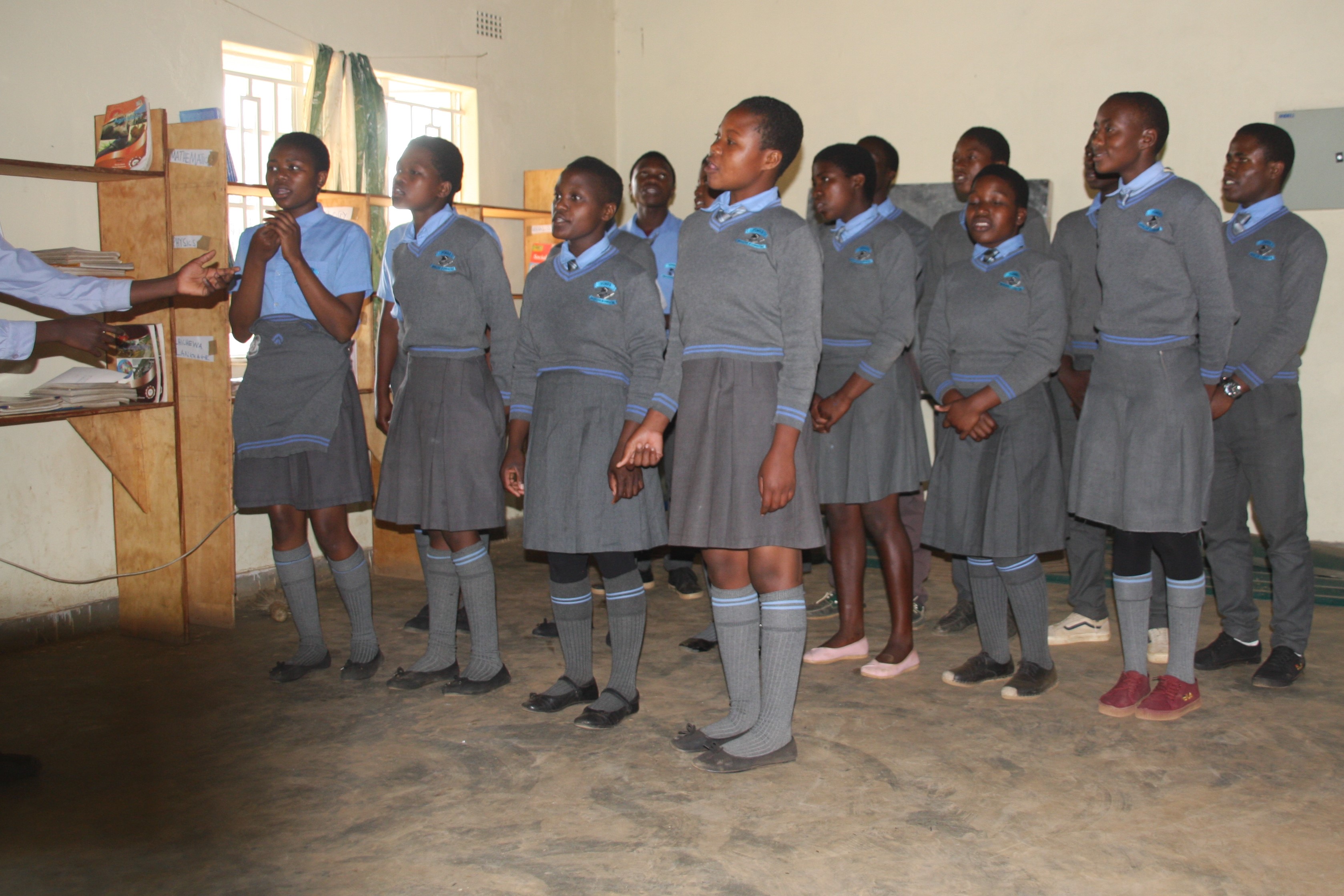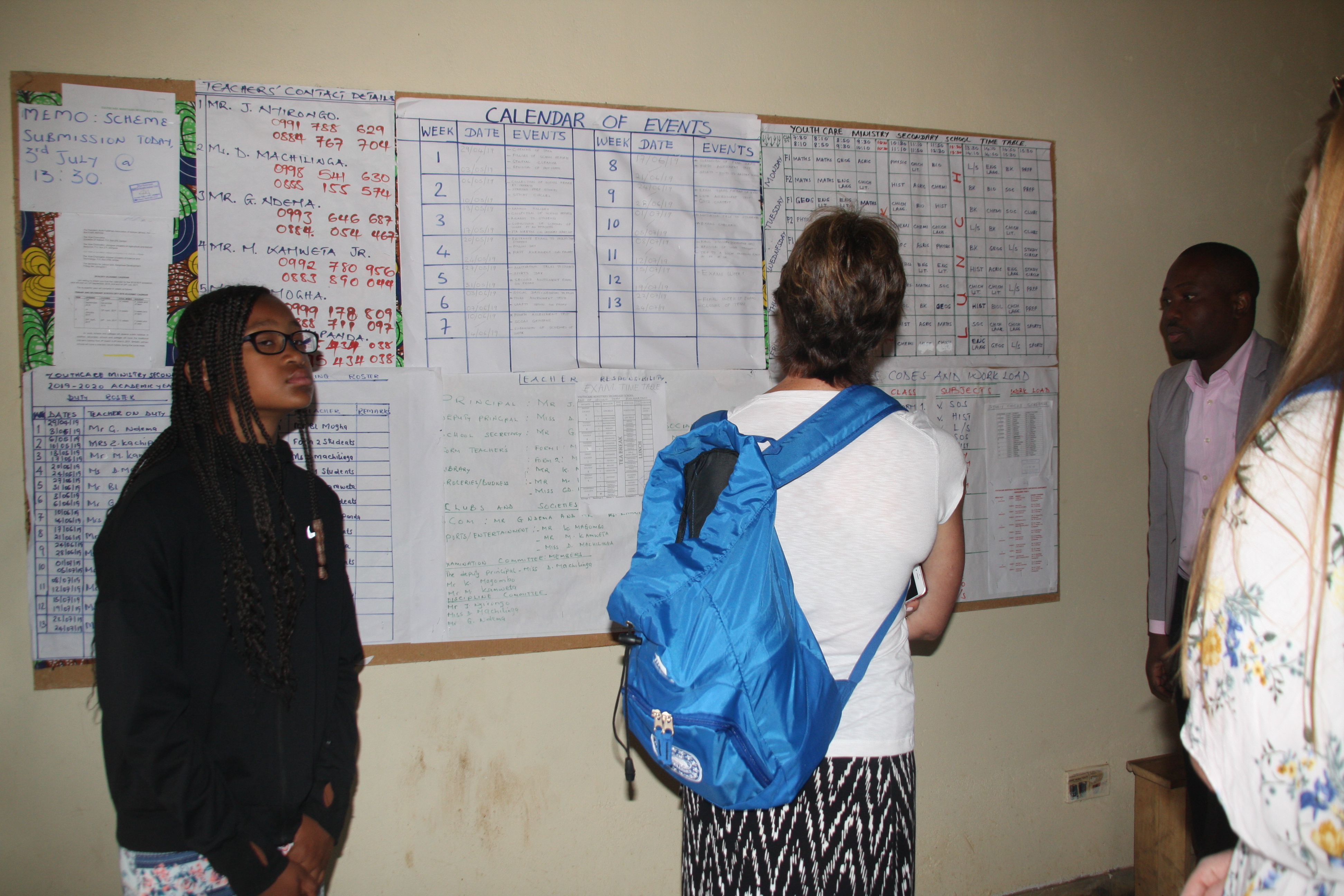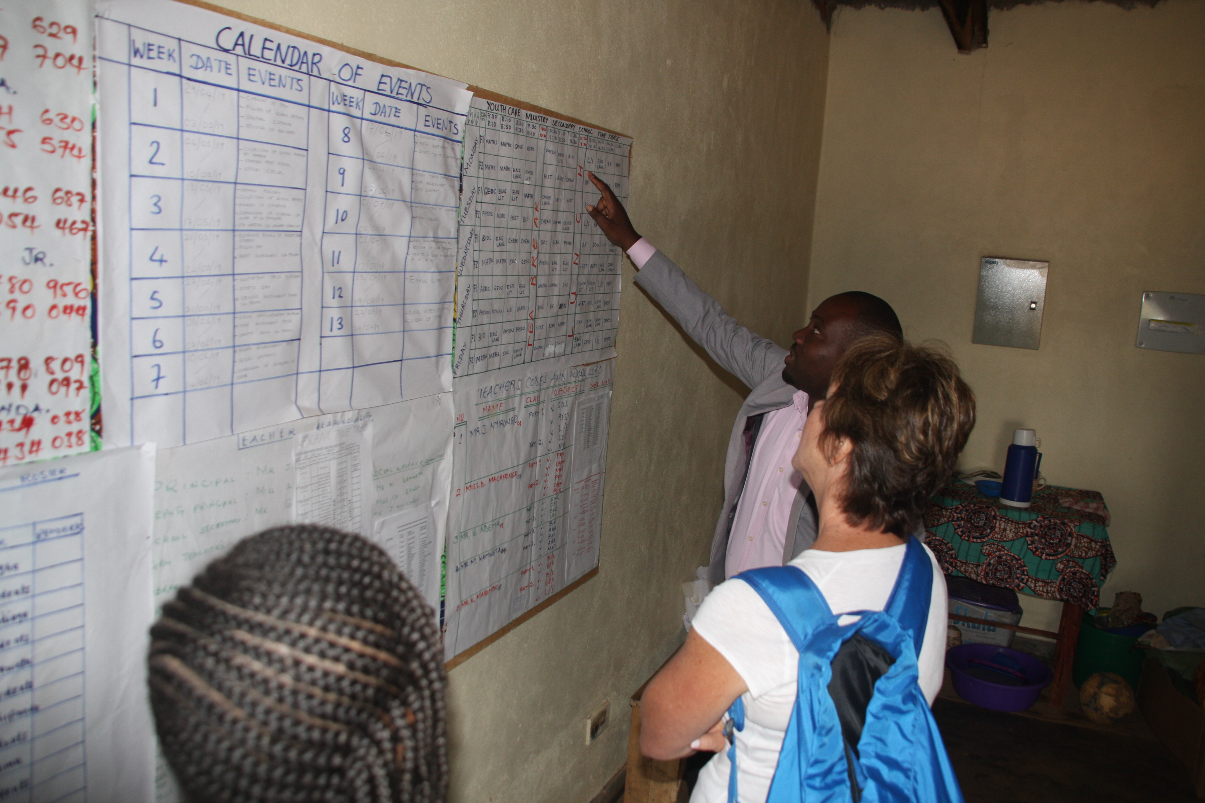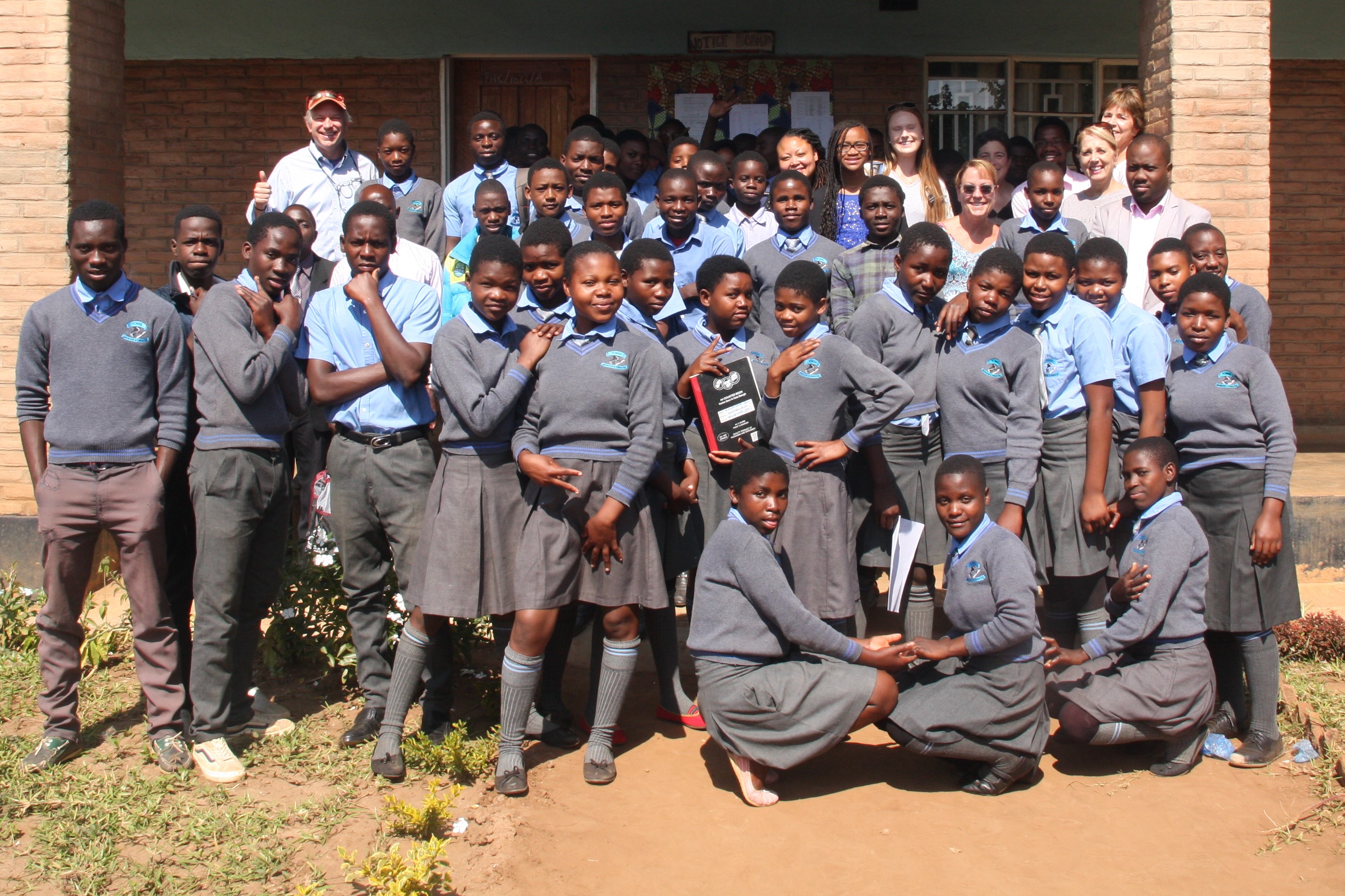 Well, actually, it wasn’t supposed to be…today was a public holiday (Malawian Independence Day observance). But when Gomez and his dedicated principal, vice-principal and teaching staff heard we planned to visit today, they gave the students last Friday off instead so we would have the chance to meet them and see the school in session. Not only that, they prepared an incredible assembly for us during which we were treated to inspiring poetry readings about the students’ growing relationships with God and with Jesus Christ, a song by their choir celebrating their faith, and addresses by Gomez and their principal. What awesome, sacred space they created for us! Nadia Vanderkuip, UrbanPromise International Executive Director, presented their principal with some school supplies that were donated and brought over from the US. They currently have two classes, Form 1 and Form 2, which roughly equate to our early high school levels.