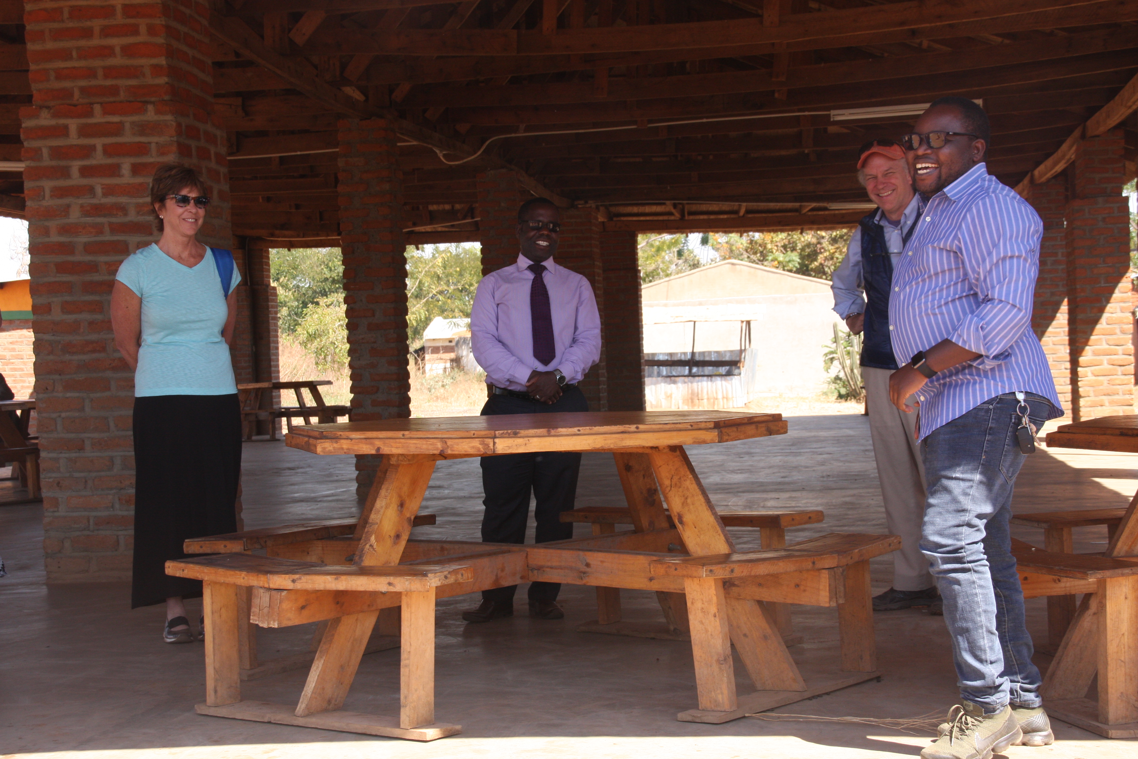 RiseMalawi was founded in 2008 by Zamumtima (Za) Chijere and Tinashe Saka, alumni of the UrbanPromise International (UPI) fellows program with a passion for vulnerable children and vision for transforming lives in rural Malawi. Za currently serves as Executive Director and Tinashe serves as Programs Director. Since then, they have been joined by Mavuto Moveti as High School Director and Chikonde (Chiko) Mbewe as Youth Coordinator. Together, they have built RiseMalawi from a tract of bare land into the campus it is today, including a boys dorm, a girls dorm, classroom buildings, a new kitchen and pavilion, and space for a staff lounge and offices. Za, who has an absolutely infectious smile, proudly showed us around the campus and gave us the history of its development, making sure we had a chance to visit the new library space and science lab, both still under construction. Principal Moveti’s excitement about these new spaces and what they’ll add to the quality of education RiseMalawi can provide were evident as he talked about their dreams for the future. He shared with us how well the students had performed on their last round of exams, and how they look forward to gaining the kind of reputation that will draw even more students to their school. We got to meet their current students, and from everything we saw and experienced while we were there, we think Za and his team have plenty to be proud of!